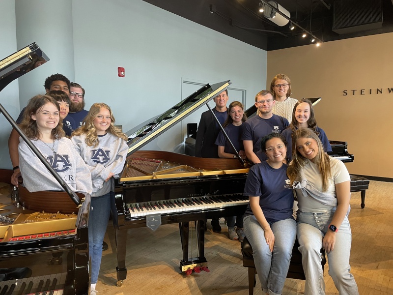 In addition to traveling abroad, 11 members of the Auburn University Piano Studio traveled to New York City on May 22-25 for a tour of the Steinway factory and to select the Department of Music’s newest piano. After touring the Steinway factory, the students tried out five brand new Model B pianos and ultimately chose Model B #623331 for the department. The trip also included several cultural events such as attending an opera at the Metropolitan Opera House at Lincoln Center, exploring the Metropolitan Museum of Art and MOMA, and visiting Carnegie Hall and the Juilliard School. Students participating in the trip were Madden Bain, Julia Herrin, Chandler Ogles, Jack Stephens, Rhianna Lumpkin, Enoch Yang, Abby Harrison, Mary Blake Fletcher, Abbie Barton, Daniel Burque and Bradley Conrad. The trip was led by Professor and Steinway Artist Jeremy Samolesky.